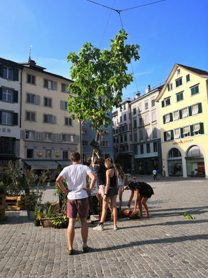 Für den Earthstrike vom 27. September 2019 baten wir die Menschen, Topfpflanzen an die Demo mitzunehmen. Mit diesen Pflanzen gestalteten wird später einen kleinen Klimastreik-Garten auf dem Münsterhof. Leider mussten wir ihn nach ein paar Monaten verschieben und seither steht er auf der Buechegg Brache.
